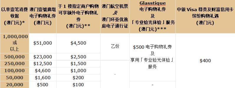 于2025年12月19日至28日期间,BESPOKE雋環会员尊享高达6.5%消费奖赏及精选购物礼遇,包括澳门壹号广塲电子礼券及奖赏、澳门航空机票连环亚优逸庭贵宾室通行证等多重奖赏。中银Visa卡用户更可额外获赠澳门元400消费额度。此外,推广期内消费满澳门元20,000或以上的顾客,亦可获赠限量版金属米奇摆设*一件。