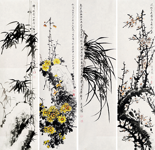 大华书画院常务副院长兼秘书长李恒星主持剪彩仪式。他首先介绍了与会嘉宾,而后是院长孙耀和讲话,他说,顺应基层书画事业的需求,本着推介作品、培养新人的指导思想,今年以来侧重于为基层书画家和业者组织小型书画联展,这次新密分院展览已经是第四期。新密地处中原,紧邻嵩山,有着深厚的历史和文化底蕴。以国家一级美术师、著名书画家刘国辰为首的一批书画同仁,继承传统,锐意创新,近些年在中华书画事业中做出了令人钦佩的成就。这次参展14人共计48幅作品,看起来不多,其实很有分量。这14名作者,其中国家级书画家4人,省市级10人,且每人皆各具特色,独有绝活;其作品广受好评,很有市场。