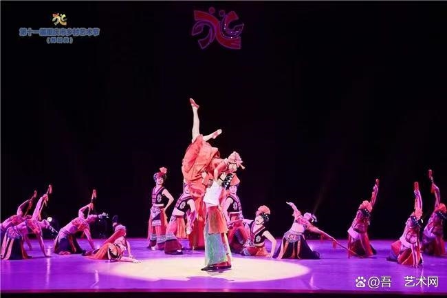 作为土家族艺术家,夏冰始终将民族文化作为创作源泉。在《妹娃要过河》《妹娃山歌哈尕扎》等代表作中,她创造性地将土家摆手舞、苗岭情歌等原生元素与现代编舞技法融合,形成独特的“土风现代舞”风格。这种转译不仅体现在动作设计上--如用肩胛骨起伏模拟山脊线、指尖颤动对应露珠坠落节奏,更深入到文化符号的解构与重构:《幺妹上花轿》将哭嫁仪式中的红绢从束缚象征转化为飞翔意象,完成女性意识的现代觉醒。
