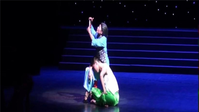 作品的极简主义美学承载着千钧的文化沉思。舞台上洗尽铅华,仅一母、一子、一线,却迸发出沛然莫之能御的视觉张力。编导以四两拨千斤的“空间压缩”手法,将前台化作逼仄巷口,母亲引颈踮足的剪影与儿子渐行渐远的轮廓构成惊心动魄的时空对望,宛若传统与现代在历史长廊中的一次缱绻回眸。母亲飞针走线时的刚柔并济,儿子灵动跳跃间的天真未凿,每一次捶背穿针、每一回嬉闹推搡,皆如银针点穴,精准刺中观者心底最柔软的童年记忆。
